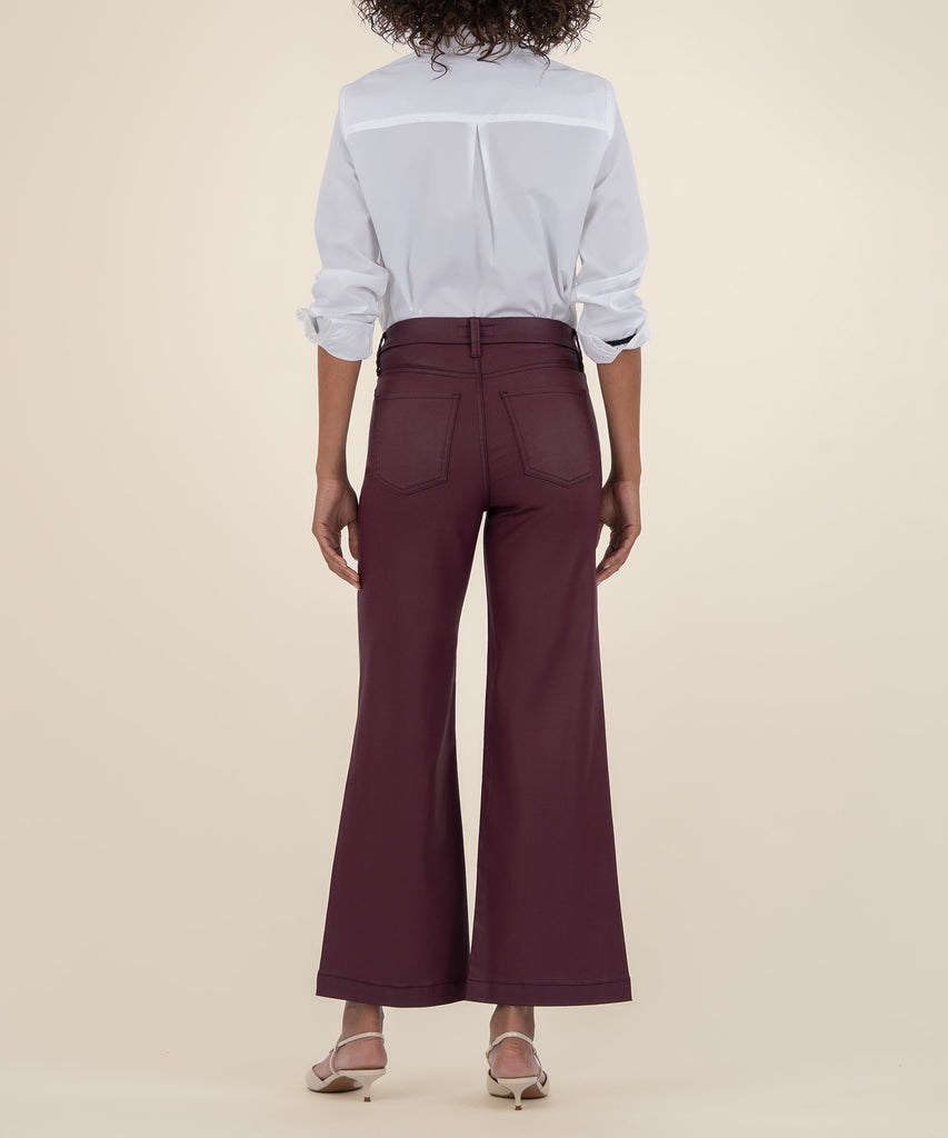 - Stand out in these coated wide-leg jeans made with ankle-grazing hems and Fab Ab front pockets that comfortably shape and smooth with raw hems in a long inseam.