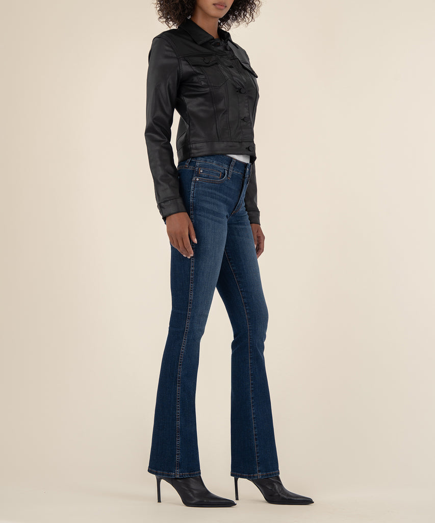 - Coated for an elevated casual look, this slightly cropped trucker jacket is made from lightweight stretch denim in a coated fabric that is a staple.