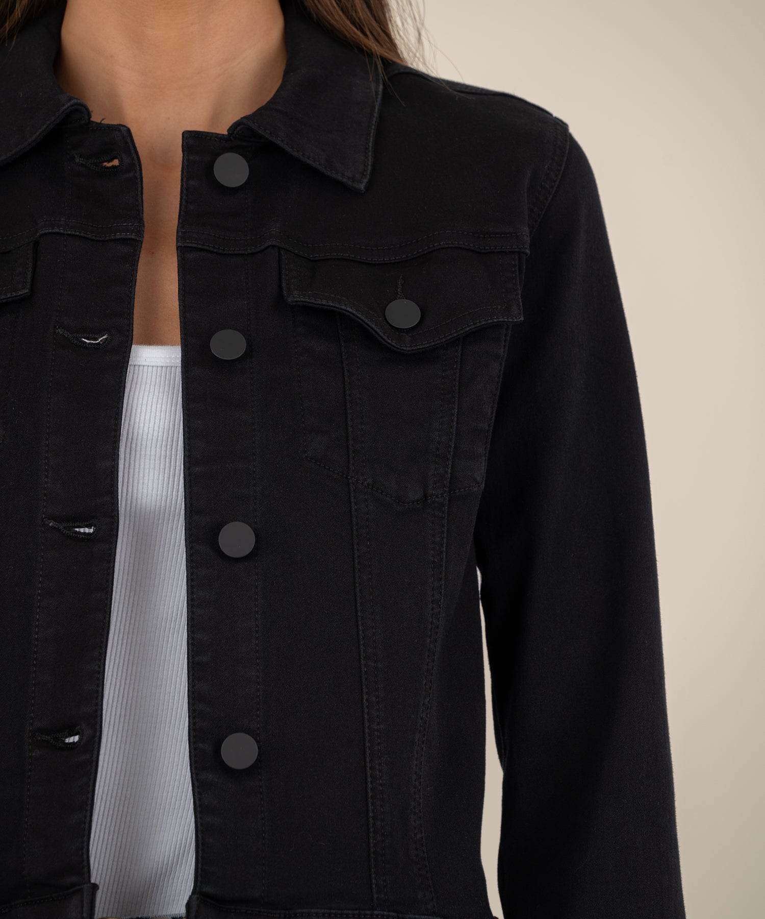 Hi Brianne P., We're thrilled to hear that your Julia Crop Denim Jacket is already becoming a favorite with its cool matte black buttons, perfect fit, and comfortable stretch! Thank you for shopping with us!