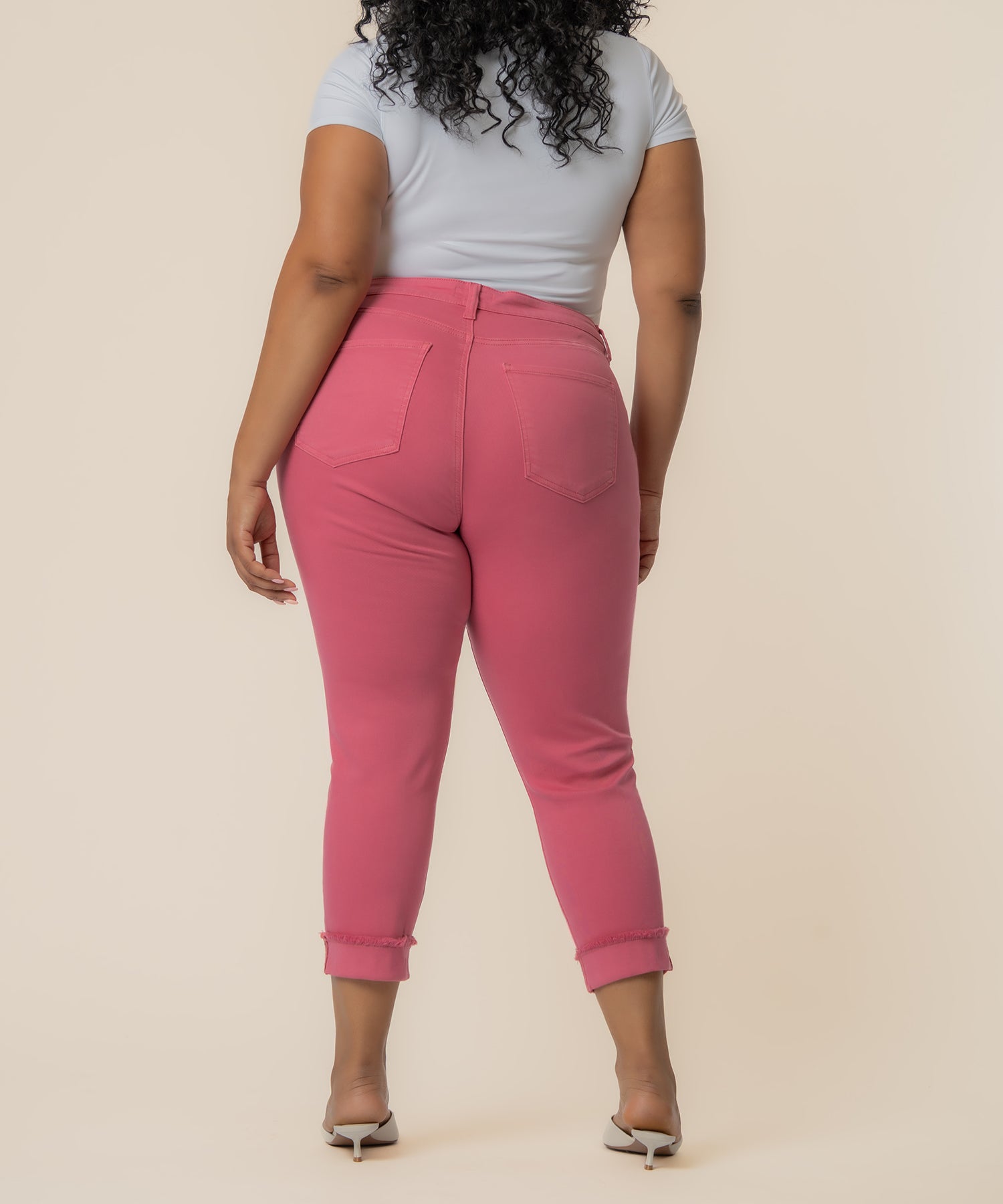 - Add a pop of sugar coral color with these Crop Straight Leg Pants, featuring a cool roll-up fray hem for that effortlessly edgy vibe. Perfect for mixing up your casual style.