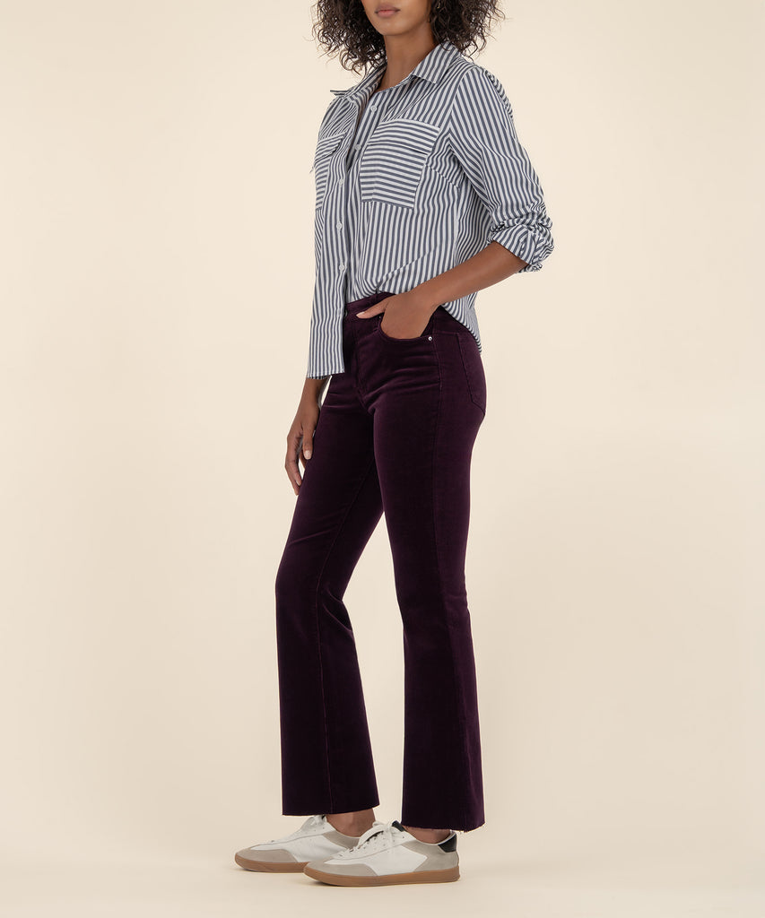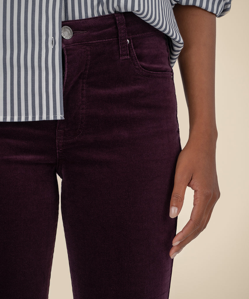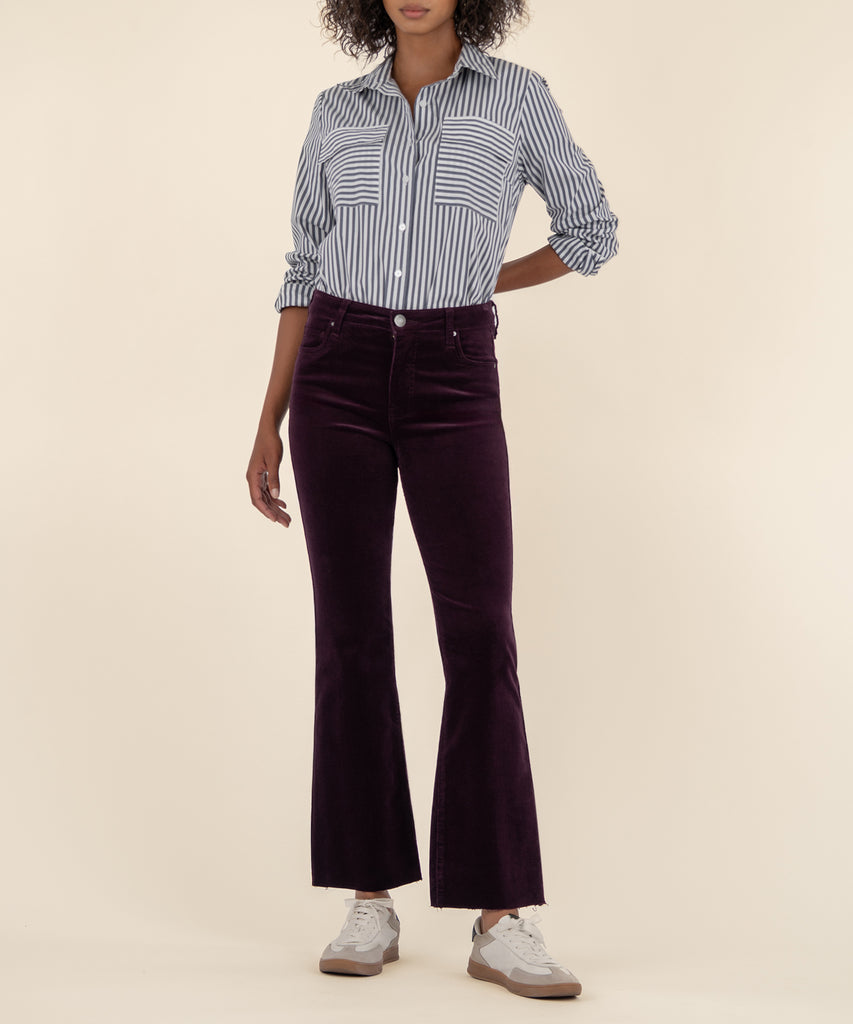 - Embrace the season with these high-rise ankle flare corduroy pants. Featuring a raw hem and Fab Ab for a flattering, smoothing fit. Made with a touch of stretch, they offer comfort and style in one perfect package. A must-have for your fall seasonal look that effortlessly combines cozy warmth with modern edge.