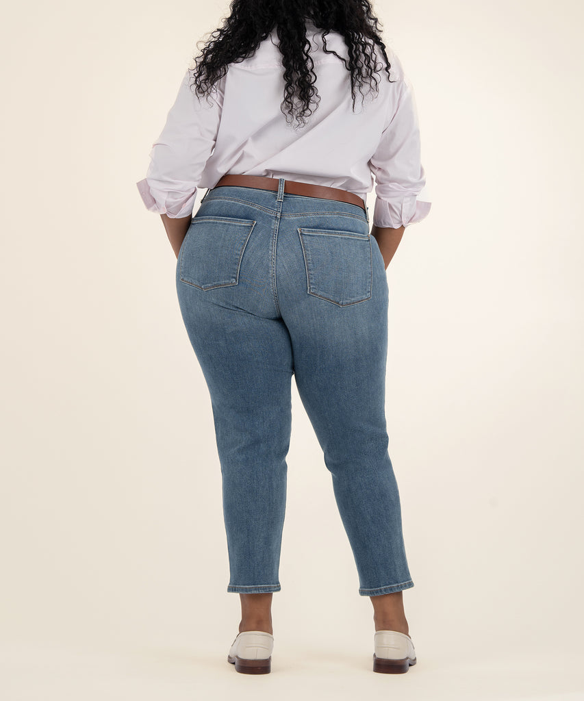 - These high-rise ankle straight jeans feature a classic medium wash and stretchy material for easy movement. With Fab Ab for a flattering fit, they’re the perfect everyday pair with just the right amount of structure.