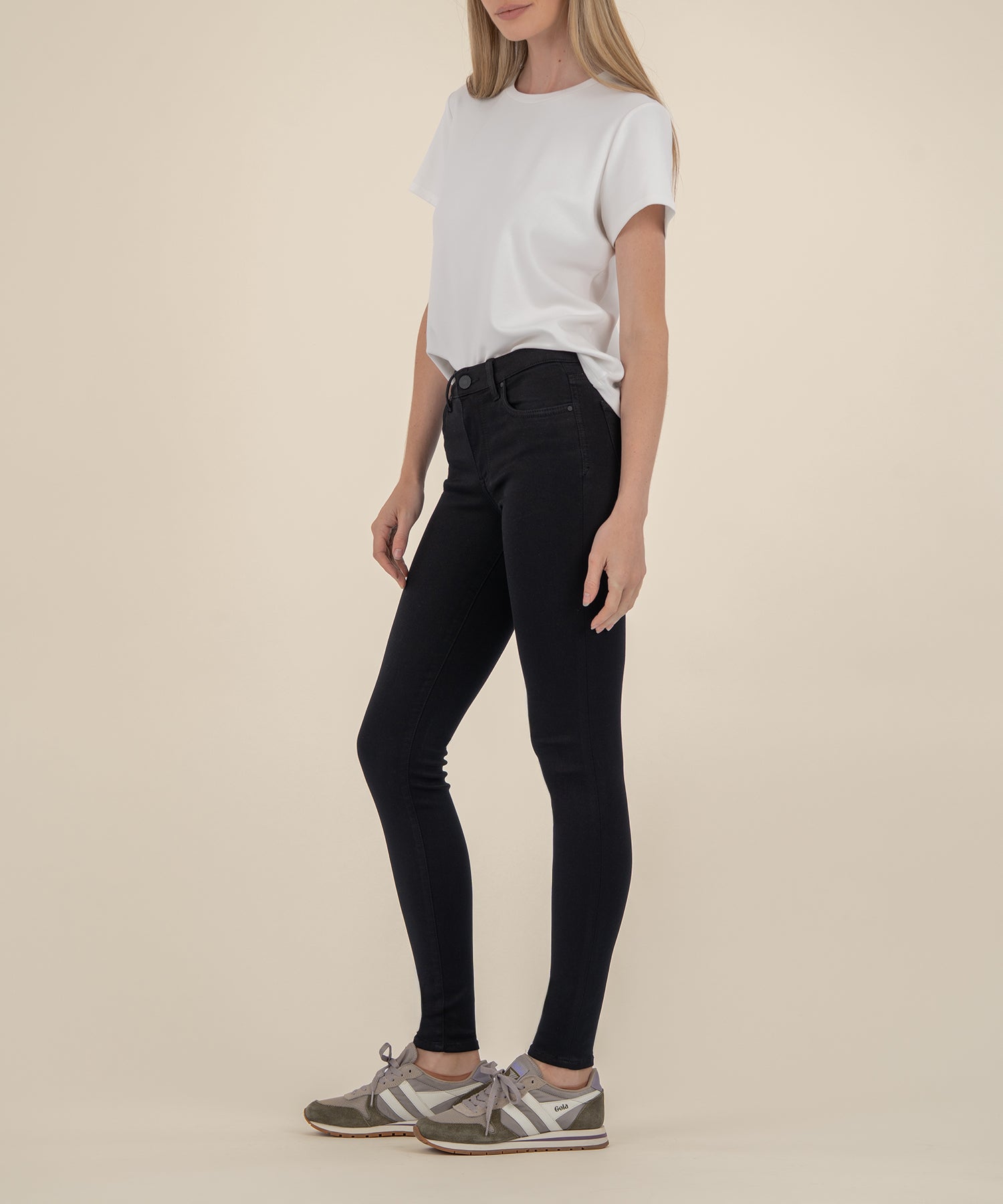 - A classic pair of black skinny jeans that will flatter every figure. This midrise, super stretch denim makes this an everyday jean.