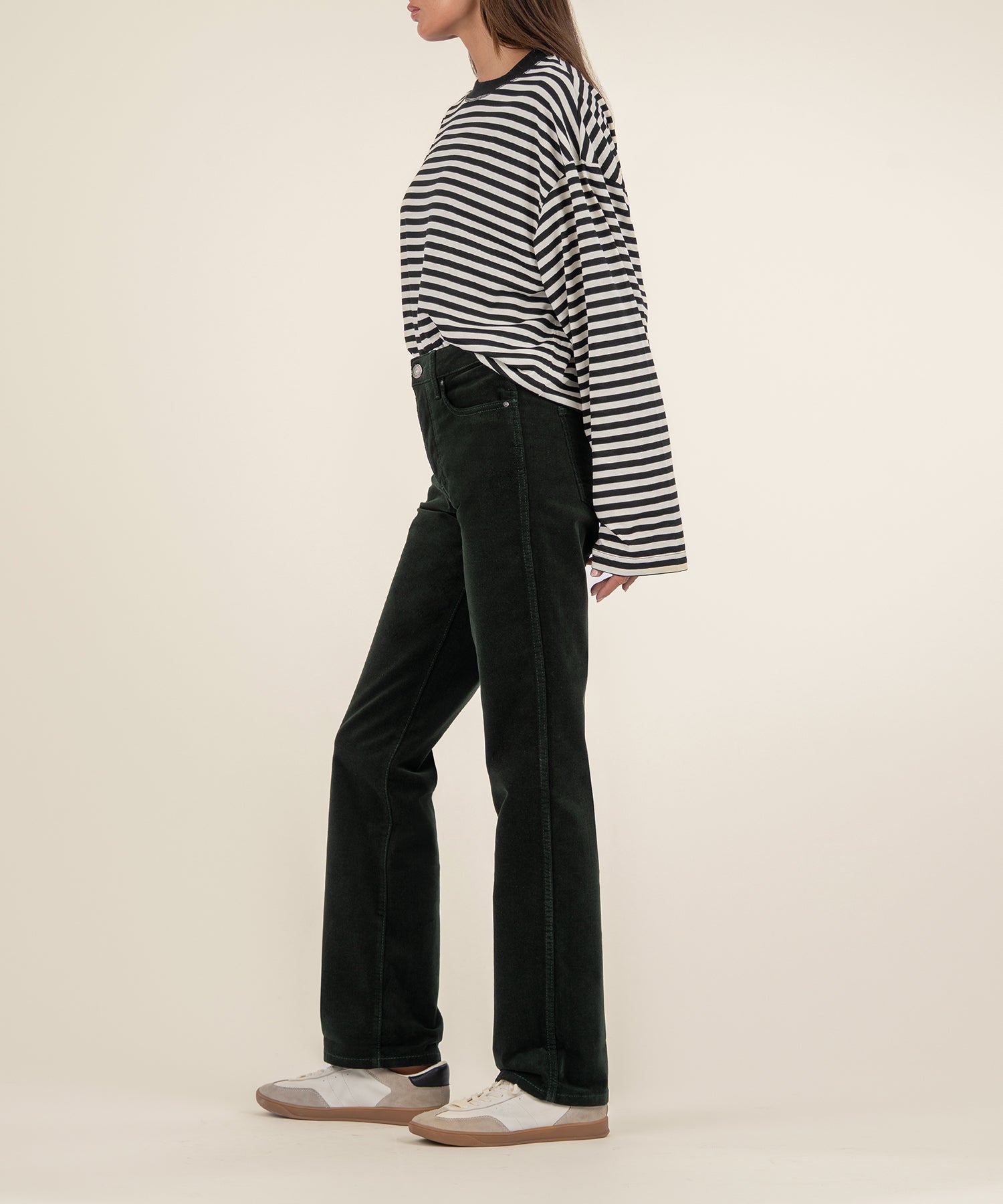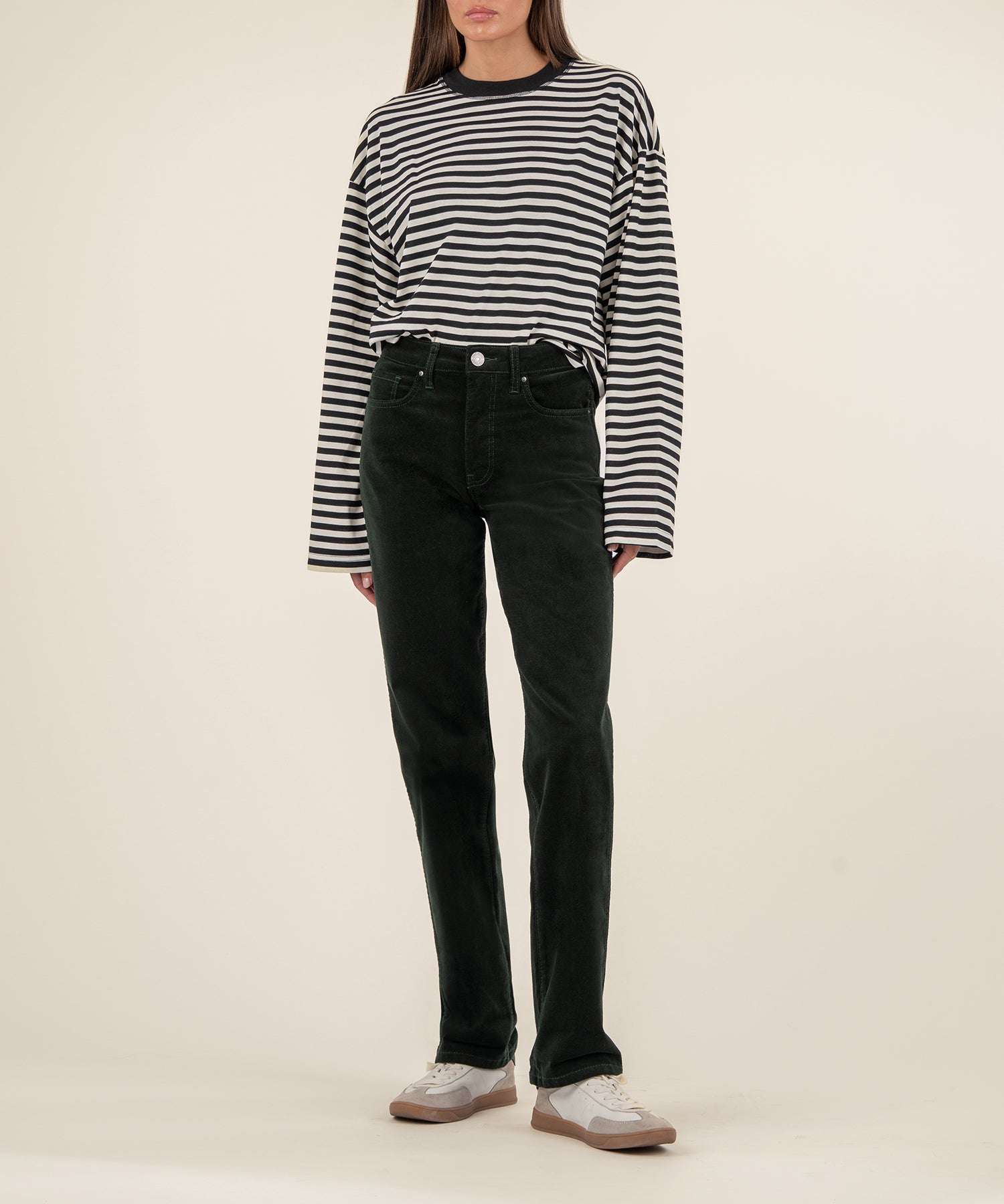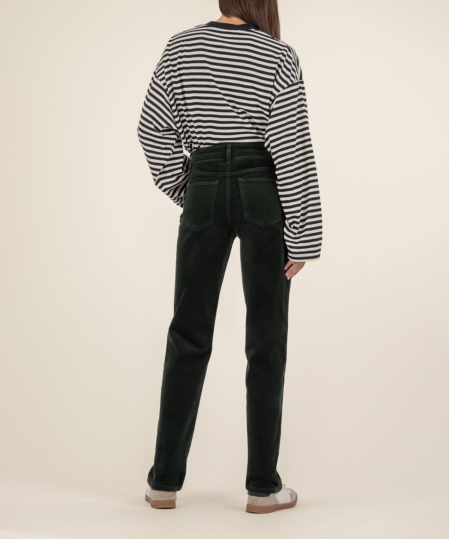 - These high-rise corduroy pants are made from soft and smooth corduroy material with a touch of stretch for all-day comfort and a polished look. The straight-leg silhouette is classic and versatile, while the Fab Ab front pockets offer gentle shaping for a flattering fit. With a timeless 5-pocket design, these pants are both functional and effortlessly stylish.