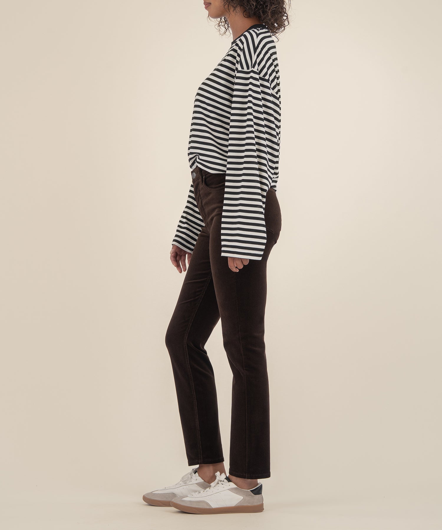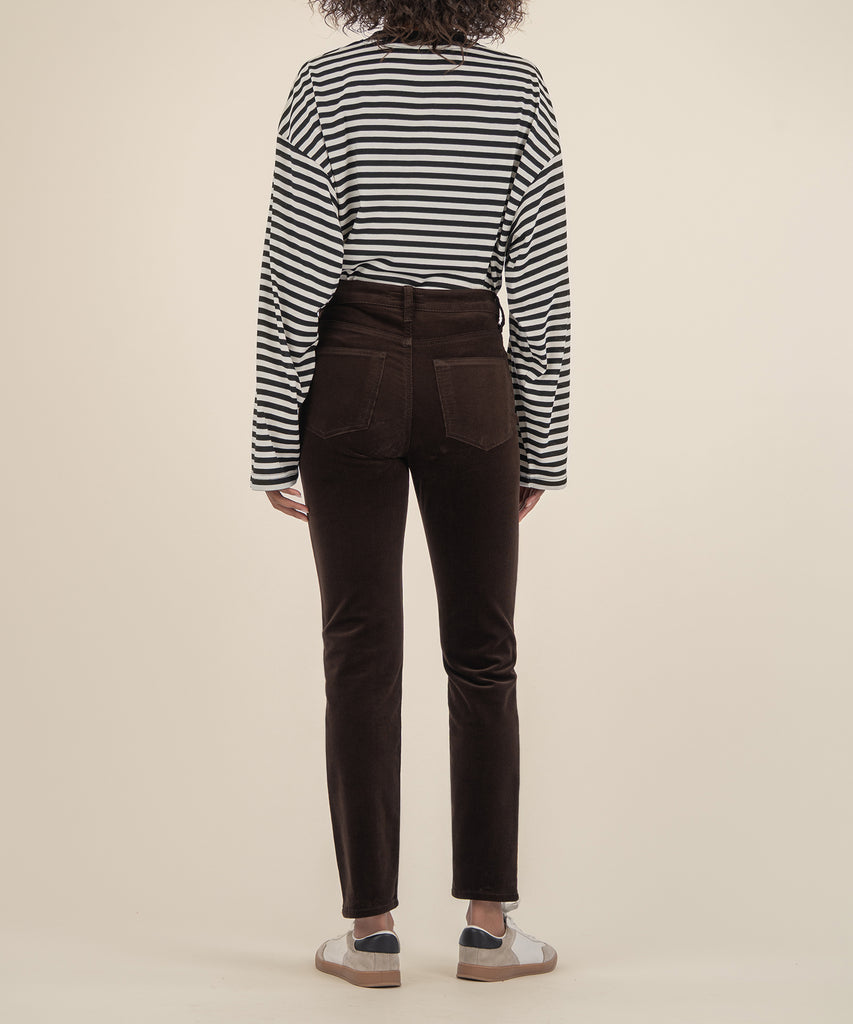 - These high-rise mom jeans are crafted from soft and smooth corduroy material with a touch of stretch for a comfortable, flexible fit. Designed with Fab Ab front pockets, they offer subtle shaping and support for a flattering silhouette. The mom jean fit gives a relaxed yet structured feel, perfect for effortless everyday style.