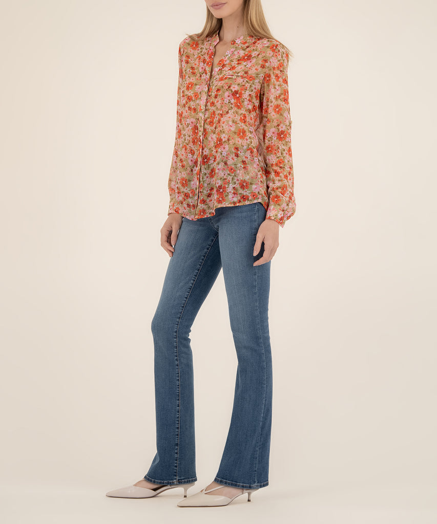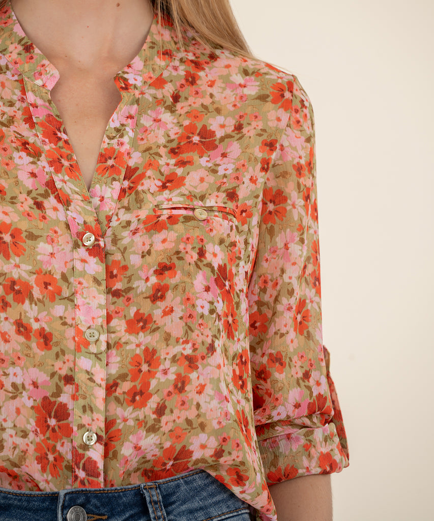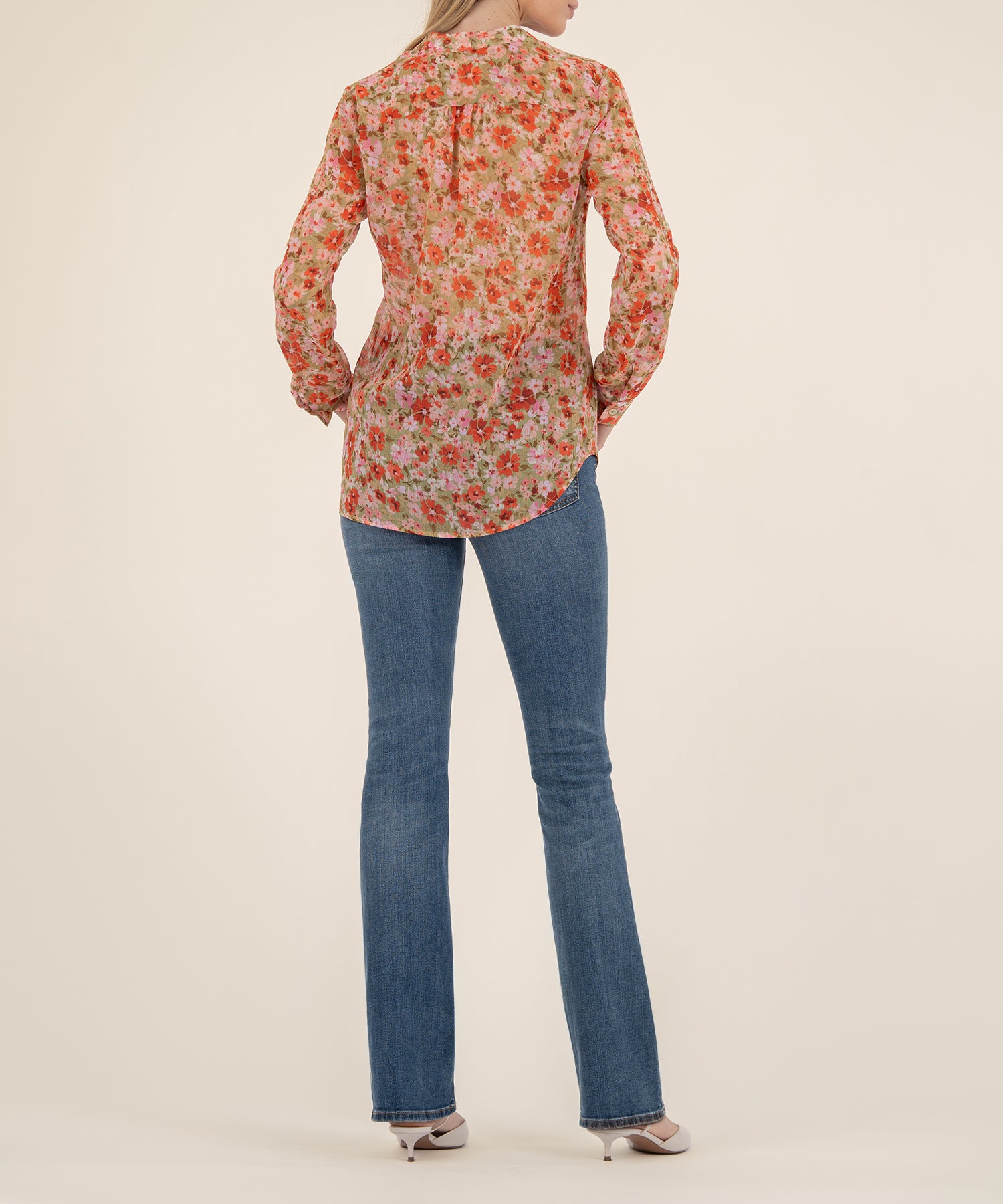 • An easy-to-wear pattern decorates this printed top. Lightweight and flowy, this breezy blouse is the perfect flattering blouse for every body type. Sleeves styled to wear buttoned at the wrists or neatly folded up and tabbed at the elbow.