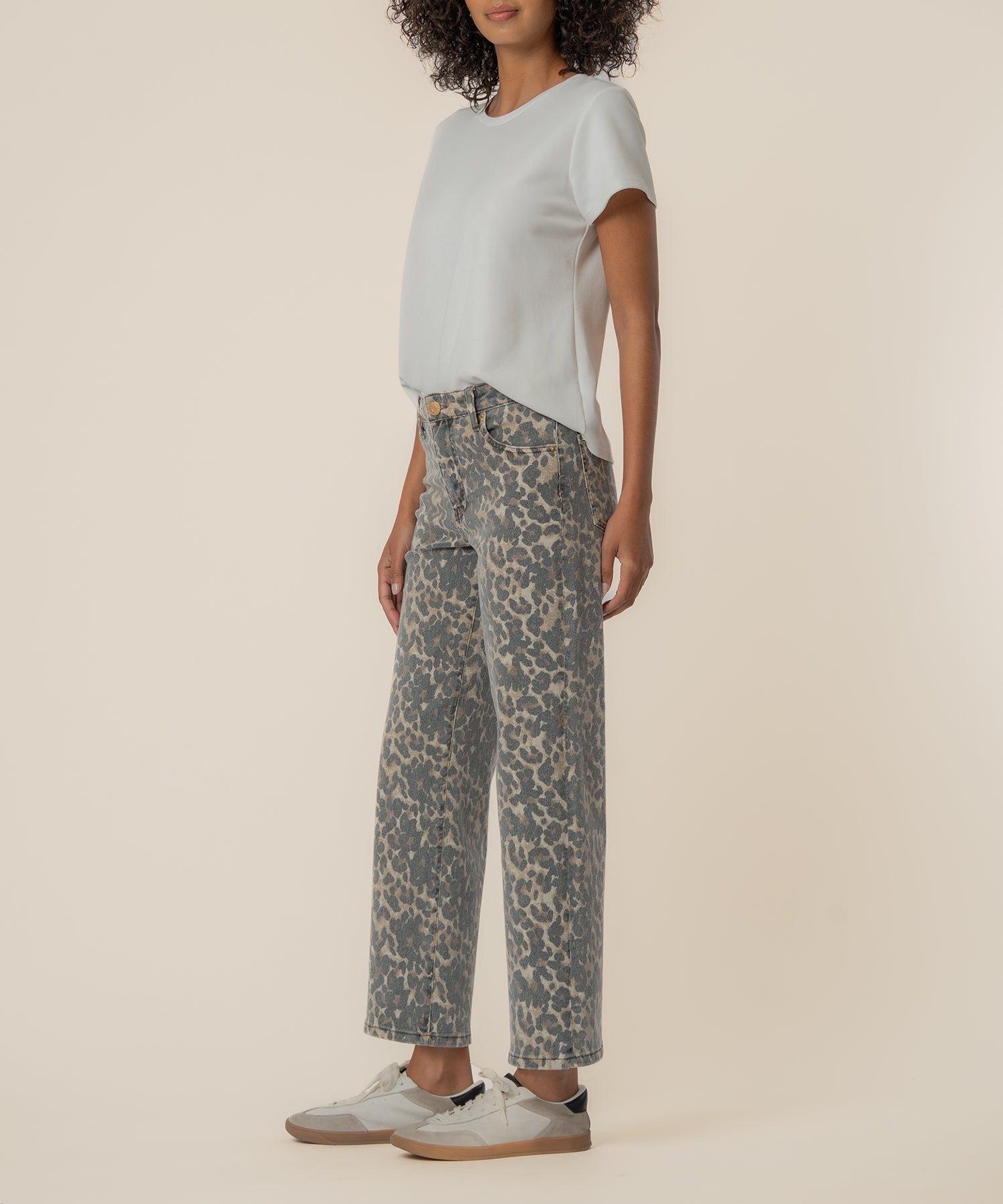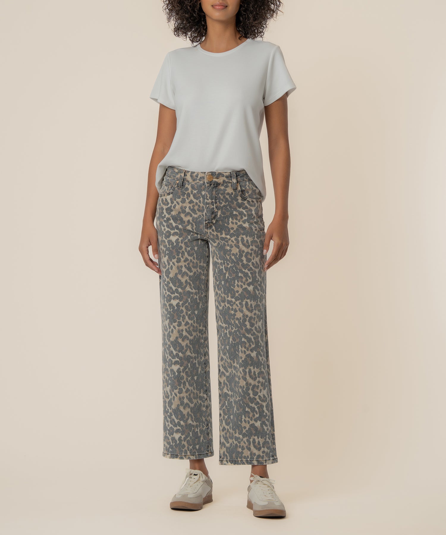 • Make a statement with these high rise, wide leg pants featuring a chic animal pattern in tan and brown. Designed with a slightly stretchy fabric, they offer subtle comfort while keeping a structured, flattering silhouette. The wide leg design adds movement and sophistication, making them perfect for both casual and dressy looks. Elevate your wardrobe with these versatile, fashion-forward pants that combine bold style with effortless wearability.