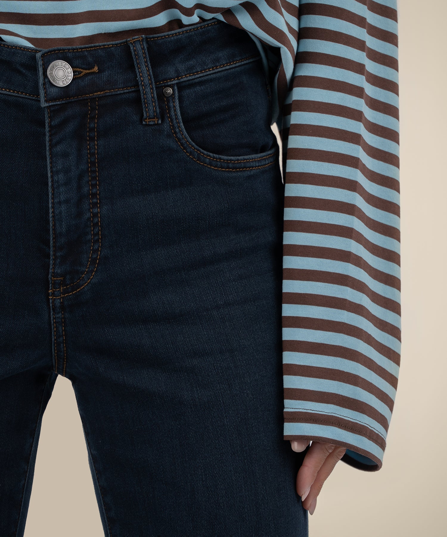 - Dark-wash stretch denim enhances the polished look of ankle-grazing flare jeans fashioned with Fab Ab front pockets that shape and smooth.