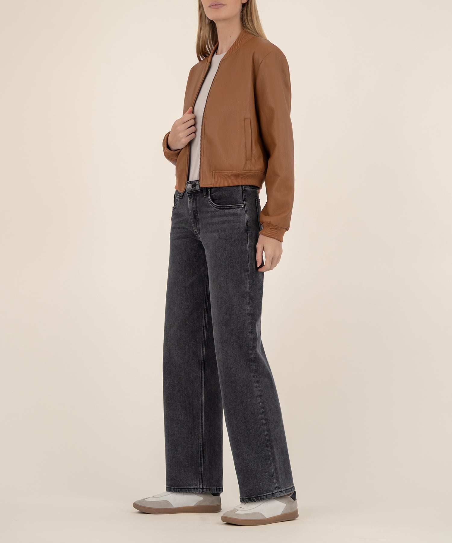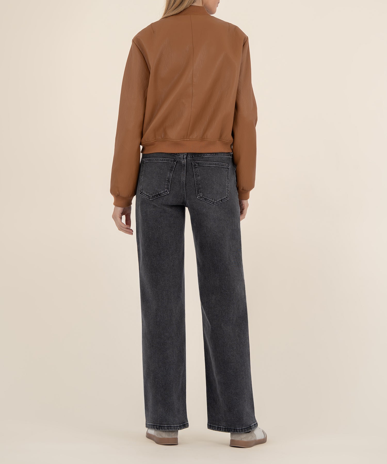 - This bomber jacket is crafted from high-quality PU material in a rich caramel hue that feels as luxe as it looks. Durable yet flexible, it moves with you while maintaining its structure. Finished with a sleek front zipper, it’s a modern essential that brings polish and edge to any outfit.