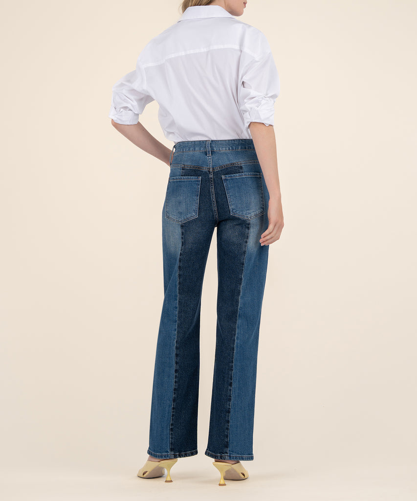 - High rise wide leg pants with front and back princess seams for structure and shape. The contrast color adds just enough edge to set them apart.