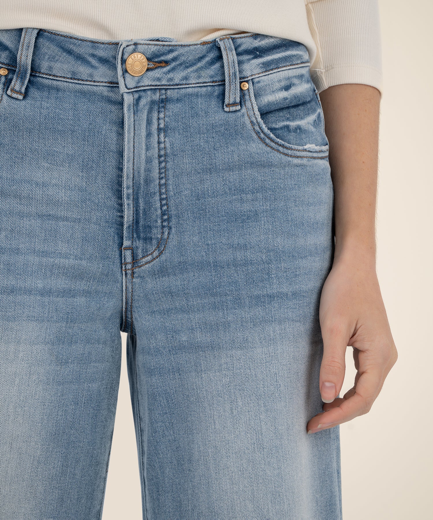 - These high-rise Fab Ab jeans combine a flattering, tummy-smoothing fit with a soft feel you’ll love to wear all day. The light wash gives a laid-back vibe, while the super wide leg and raw hem add effortless, modern style.