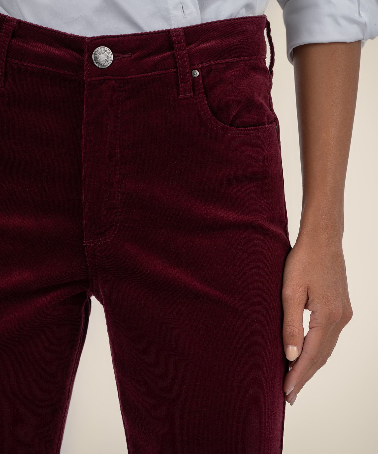 - These retro-chic high rise flare jeans are made with stretchy corduroy, full-length legs and Fab Ab front pockets that comfortably shape and smooth.