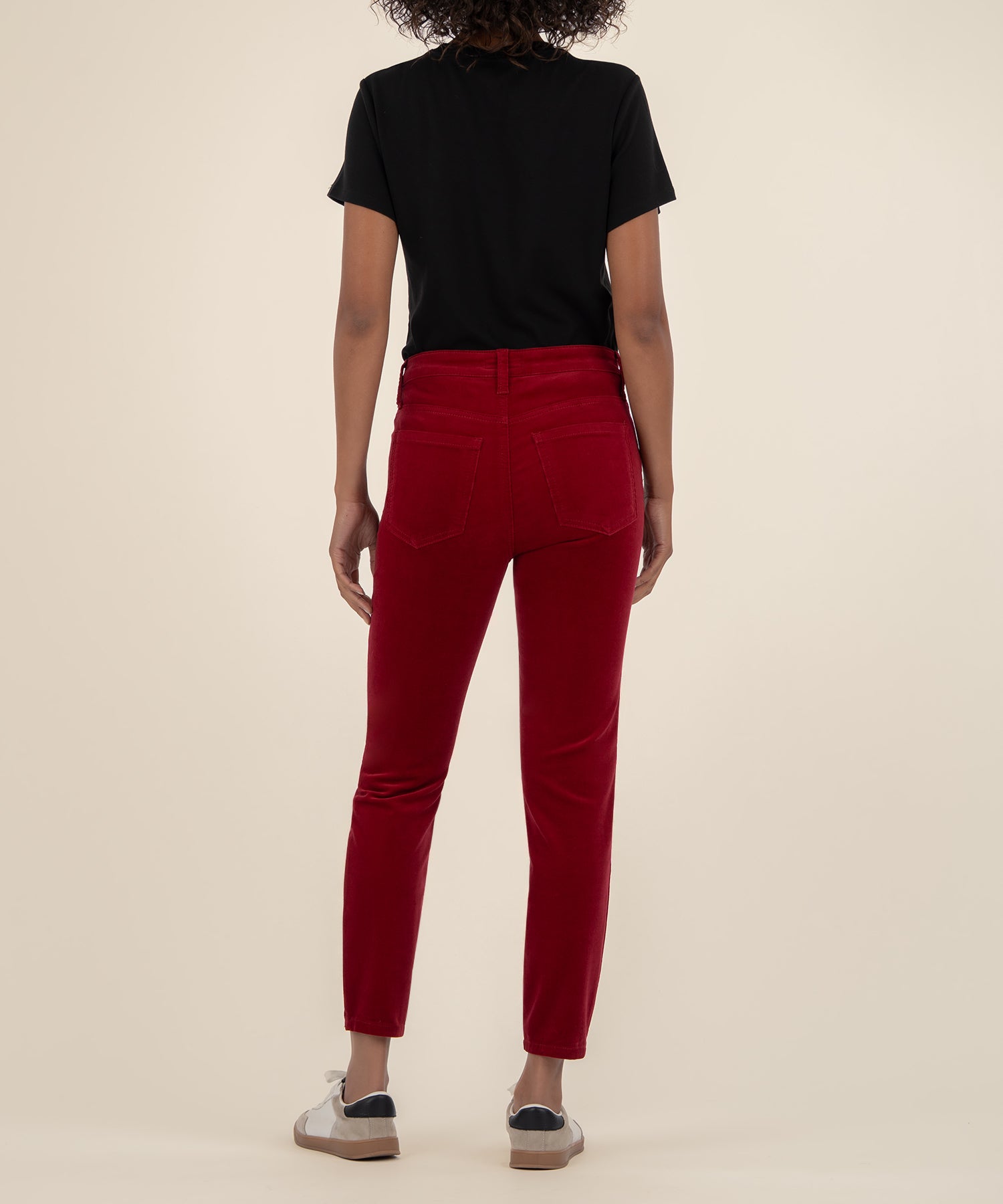 - Step into fall with these high-rise slim leg corduroy pants, crafted with a touch of stretch for all-day comfort. Perfectly tailored for a sleek silhouette, they’re a must-have for your fall seasonal look. Versatile and chic, they easily transition from casual days to polished evenings.