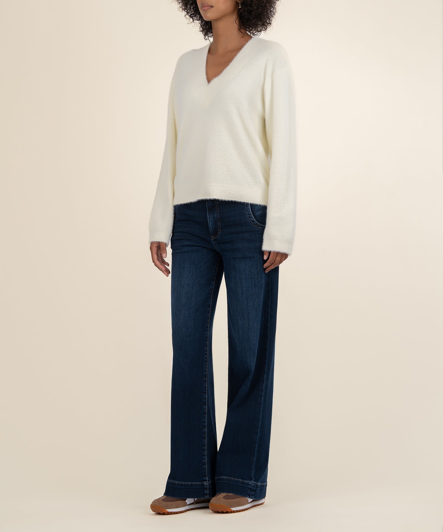 - Cozy meets chic in this super soft sweater featuring a relaxed boxy fit and a flattering deep V-neck. Perfect for layering or wearing on its own, it’s your new go-to for effortless comfort and laid-back style.