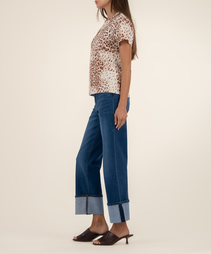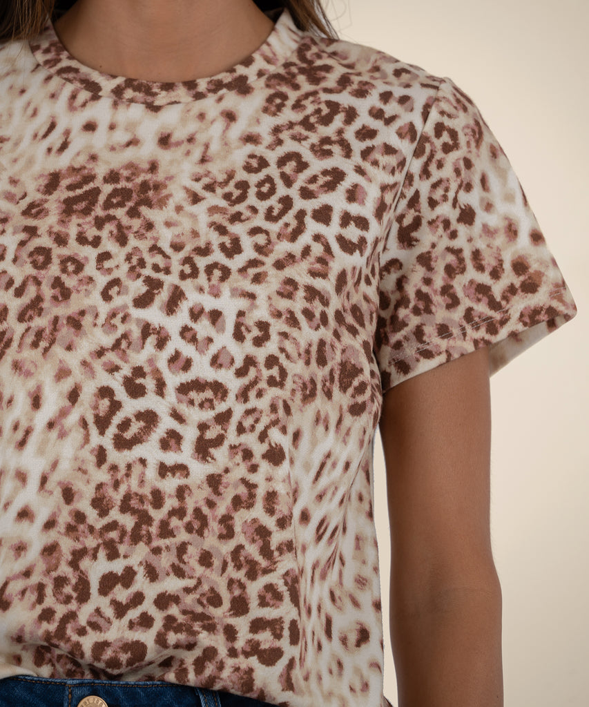 - This short sleeve scoop neck tee is made from a soft modal blend that feels great all day. Featuring a bold animal print, it adds a touch of edge to your everyday style. Easy to wear, easy to love — your new go-to statement tee.