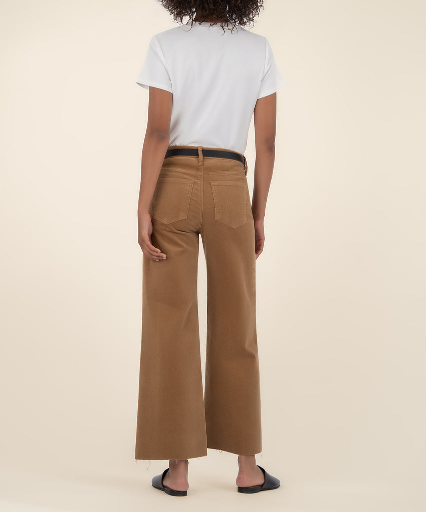 - Step into effortless style with these high-rise wide leg corduroy pants, featuring Fab Ab for a smoothing fit and a trendy raw hem. Crafted with a long inseam and a touch of stretch, they combine comfort with a modern, flattering silhouette. Perfect for making a statement in any season.