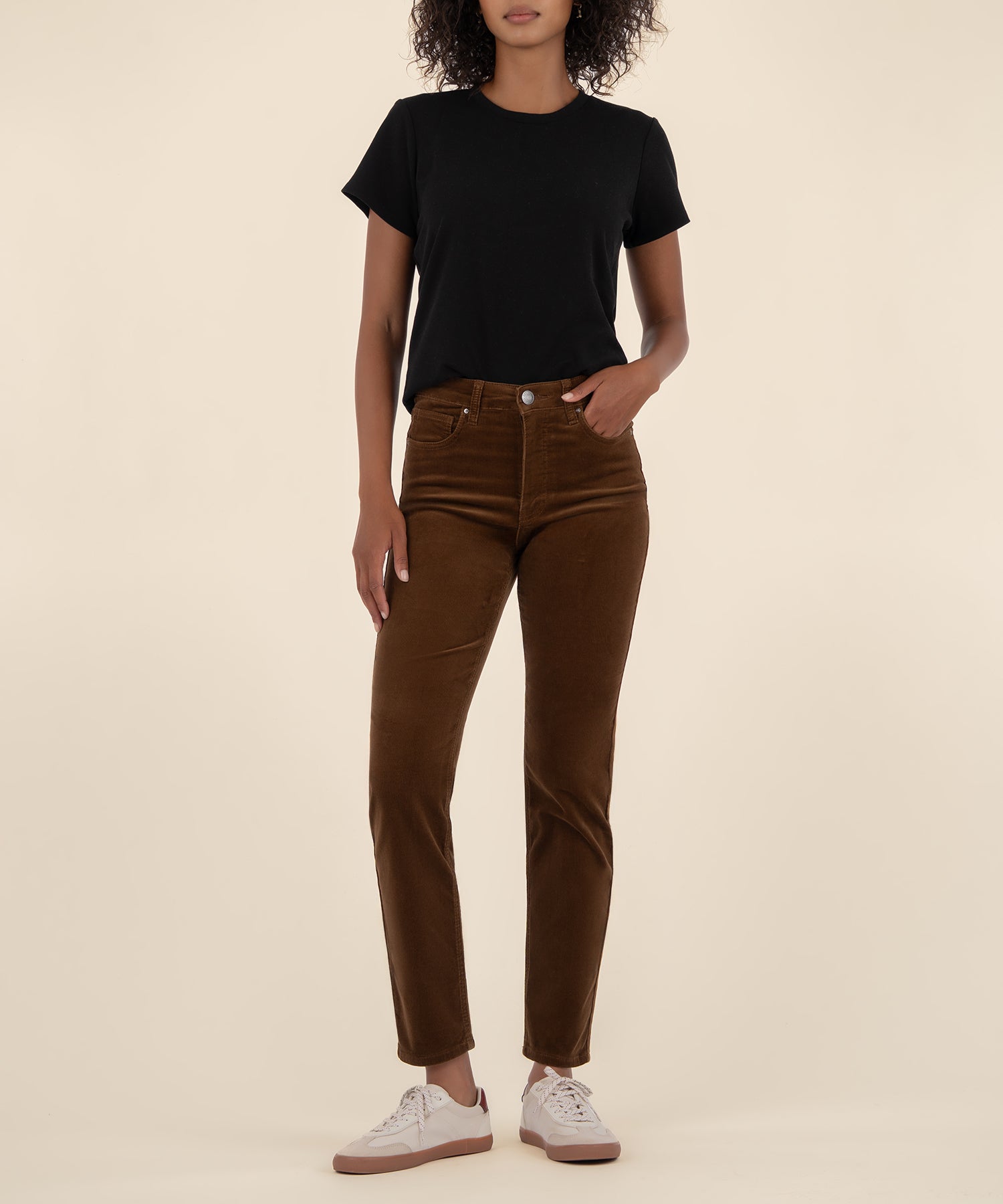 - A timeless appeal in a high-rise stretch-kissed cotton corduroy designed with our Fab Ab front pockets that smooth and add comfort.
