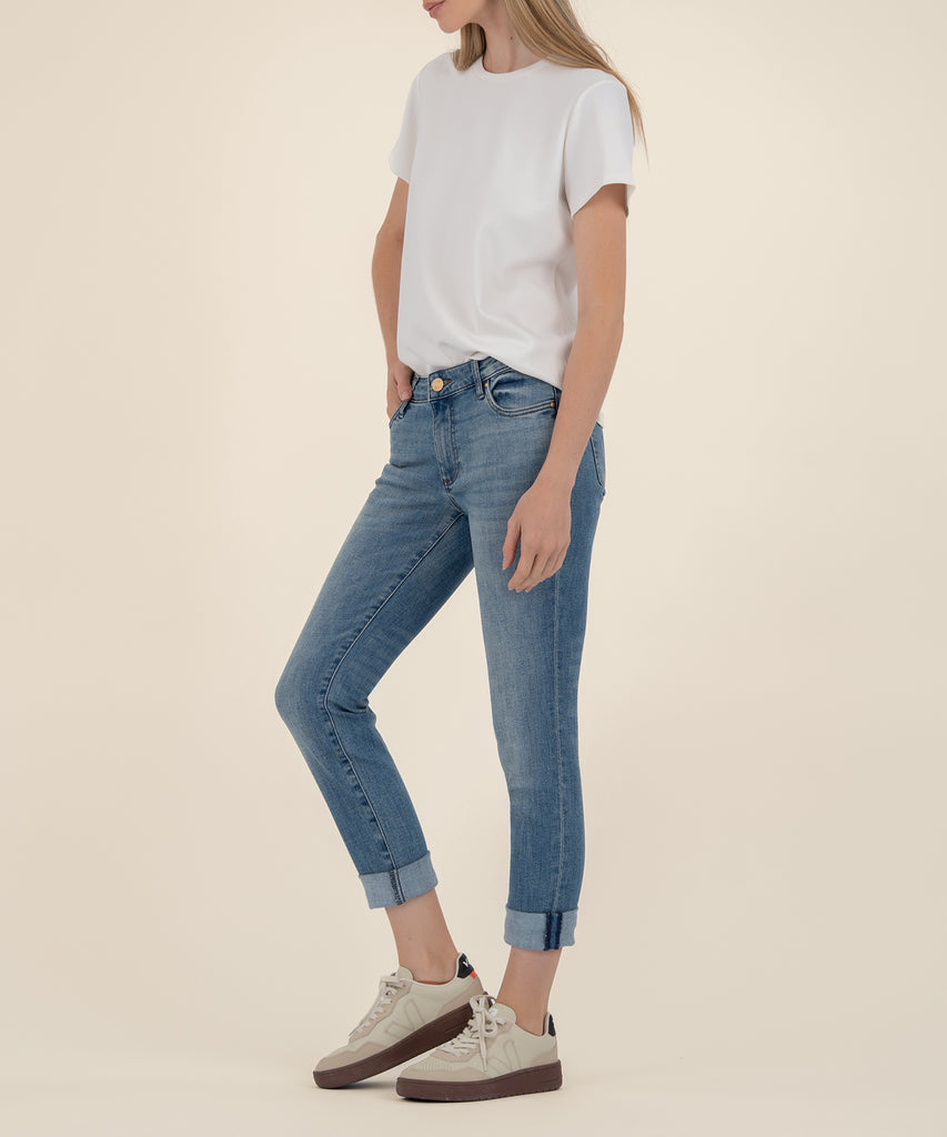 • Relaxed yet flattering, these boyfriend jeans feature a mid-rise fit and stretchy material for all-day comfort. With a touch of distress and a roll-up or roll-down hem, you can switch up your style with ease. The medium wash adds a classic, laid-back vibe.