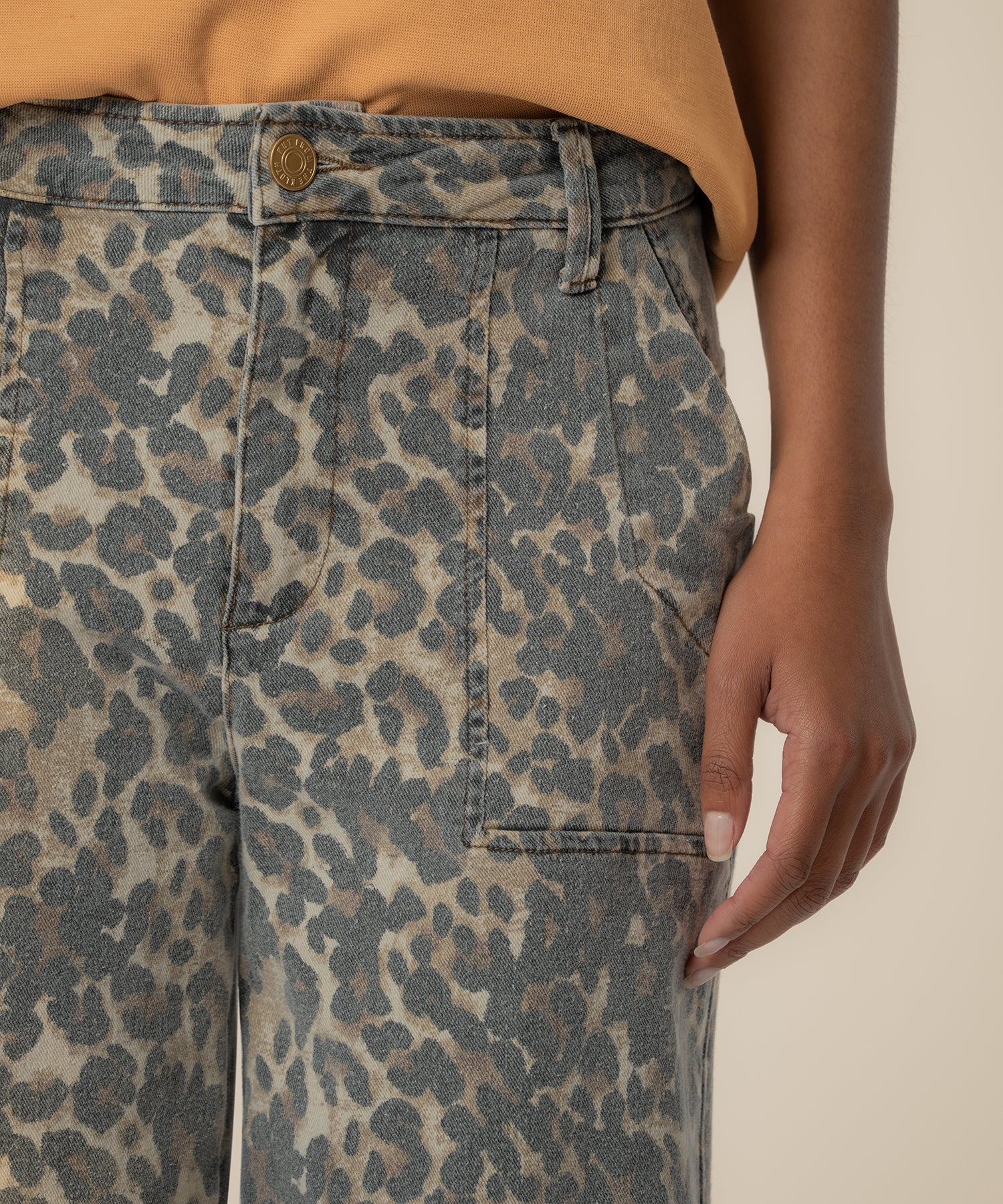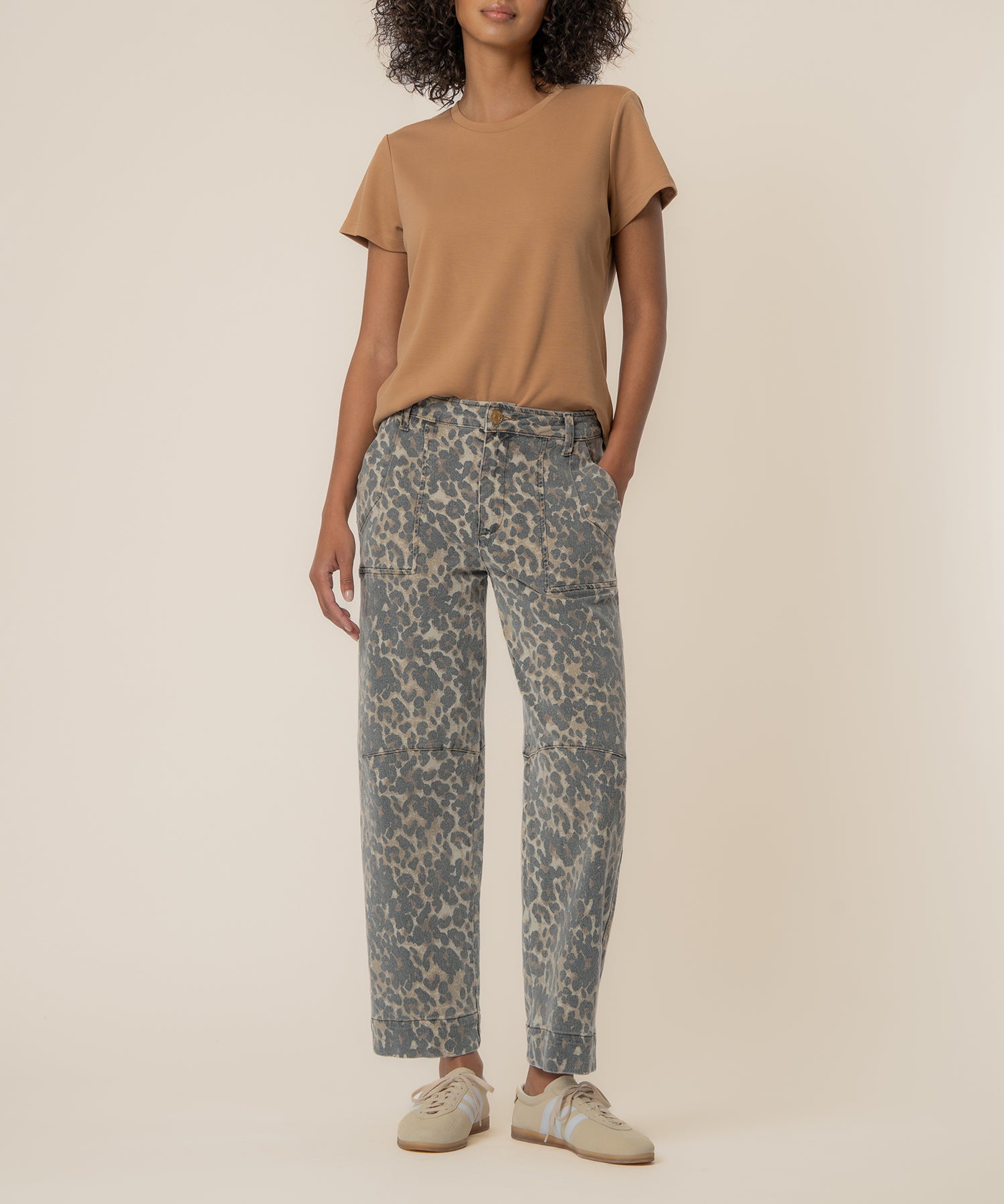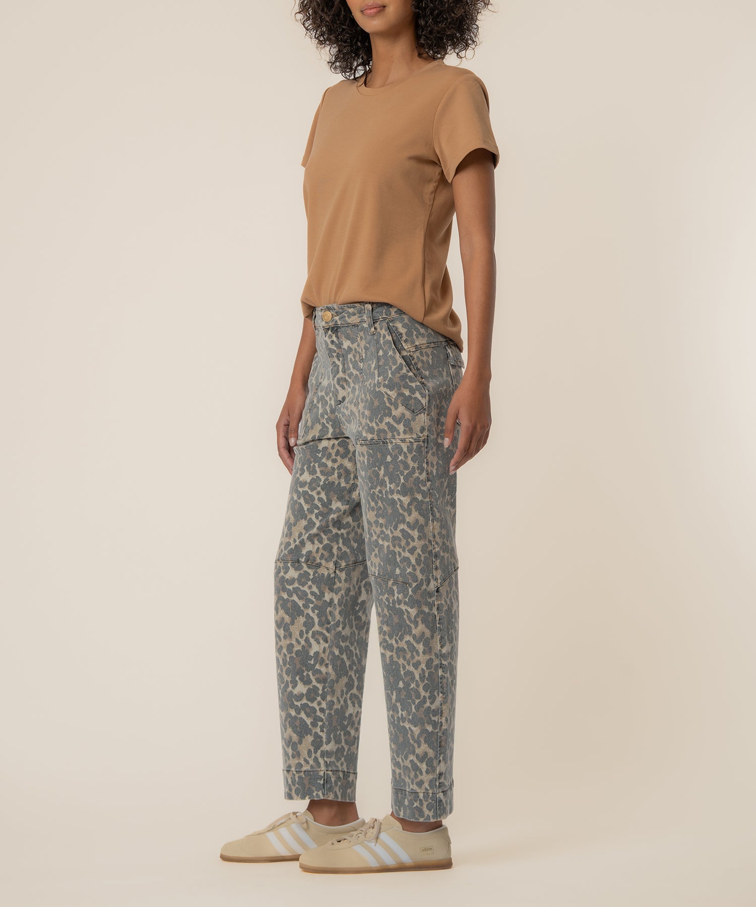 • Make a statement with these high-rise, wide-leg barrel pants featuring a chic animal pattern in tan and brown. Designed with a slightly stretchy fabric, they offer subtle comfort while maintaining a structured, flattering silhouette. The barrel-leg shape adds modern dimension and effortless movement, creating a bold yet polished look. Perfect for both casual and elevated styling, these versatile pants bring fashion-forward edge with all-day wearability.