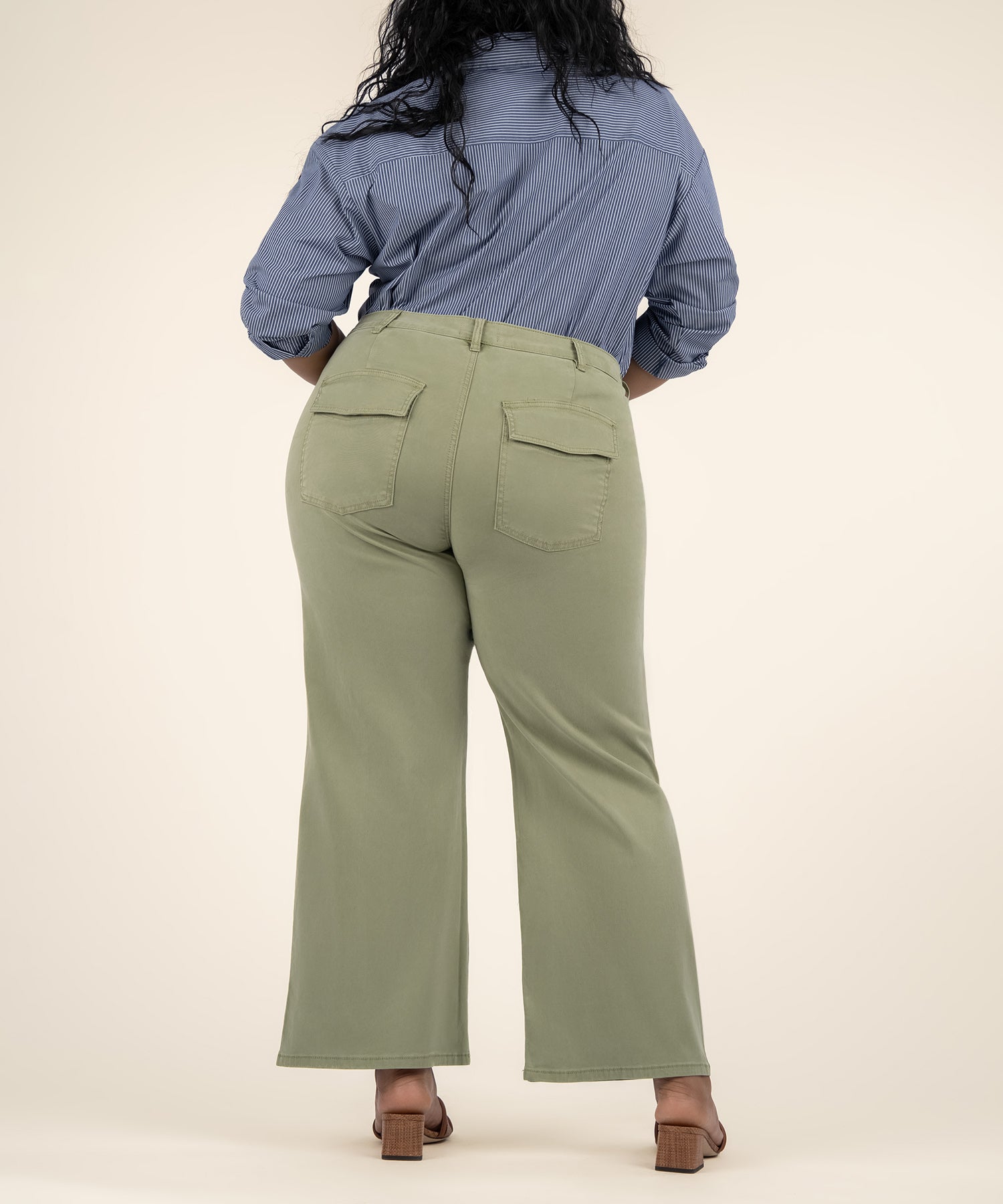 • These wide leg pants are crafted from a soft-feel material that’s as comfortable as it is stylish. The fresh pistachio color adds a modern twist, while back pockets with flaps bring a subtle utility-inspired detail to this relaxed yet refined look.