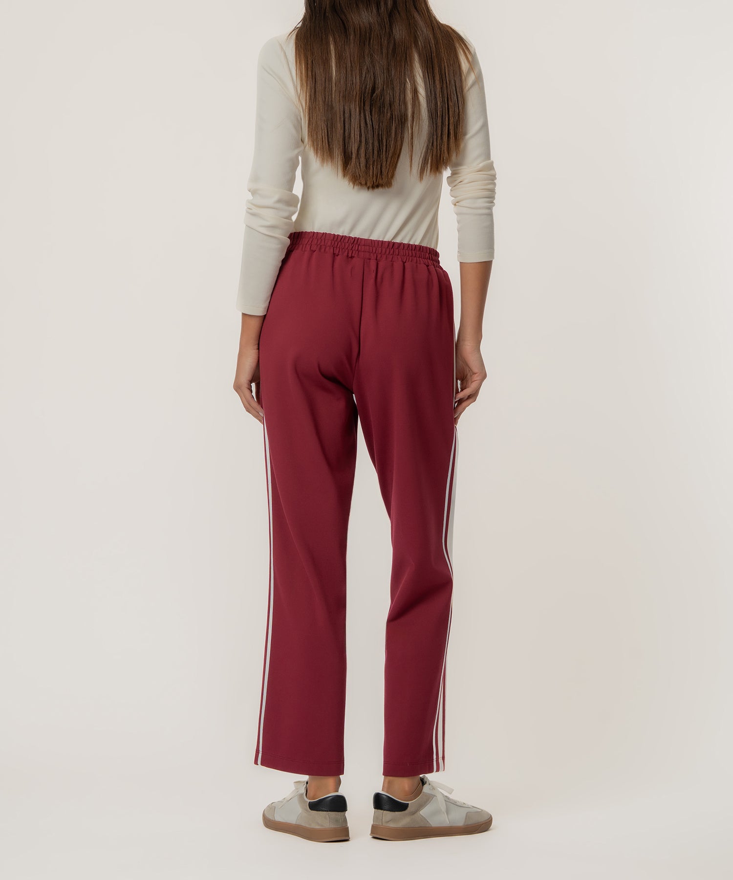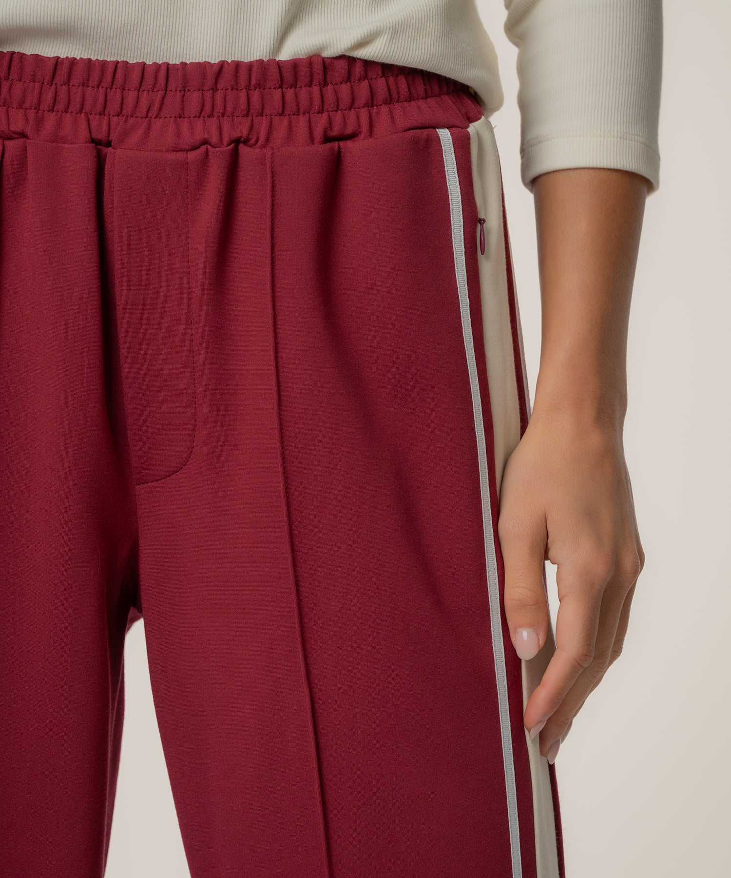 - These straight leg pants combine comfort and style with an elastic waist and sleek side seam pockets featuring invisible zippers. Side contrast lines add a modern, sporty edge to the clean silhouette. Perfect for both casual and elevated looks, they’re a versatile wardrobe staple.
