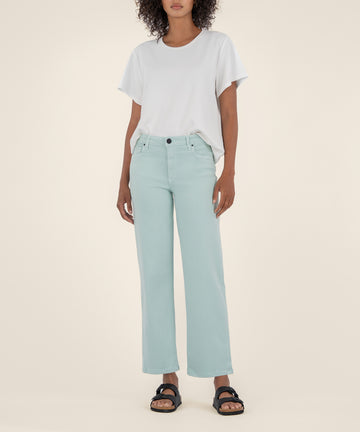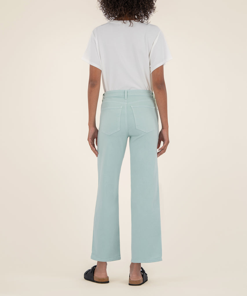 - Crafted int he USA these high rise wide leg pants come in a refreshing icy mint color, made with a soft feel and stretchy material for all-day comfort. Effortless, stylish, and easy to wear.